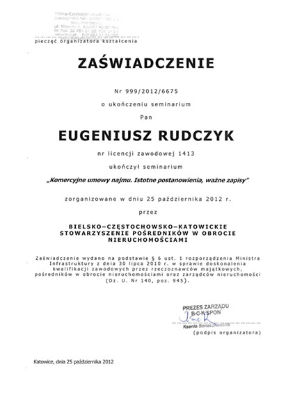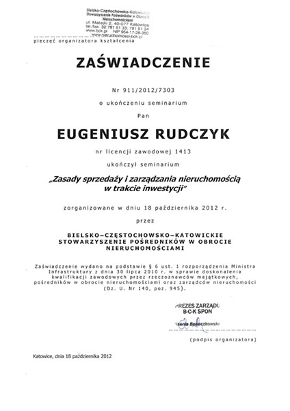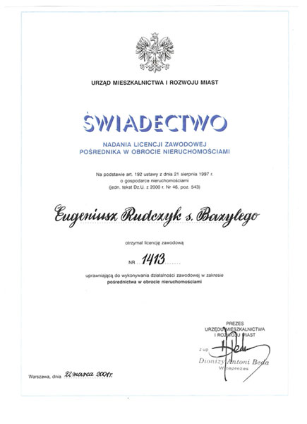 Posiadamy wszelkie uprawnienia nadane przez Ministerstwo Infrastruktury- Licencja Zawodowa w zakresie Pośrednictwa Nieruchomości nr 1413 oraz obowiązkowe ubezpieczenie z zakresie odpowiedzialności cywilnej. Jesteśmy członkiem Stowarzyszenia Pośredników w Obrocie Nieruchomościami BCK